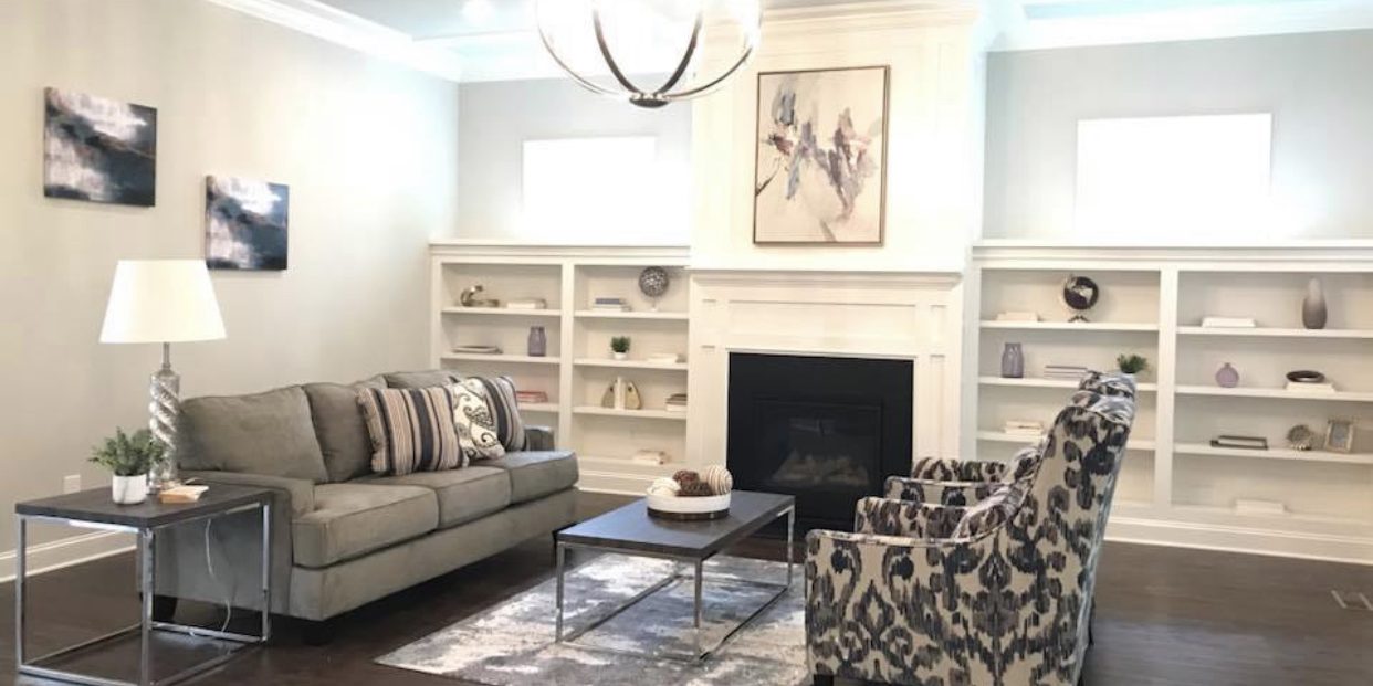 This home was an entry for the Parade of Homes 2018. For this house we wanted to pair blues and lavender along with metallics for a more glamorous look. However in the master bedroom, we went for a more contemporary look while still staying cohesive with the rest of the home.