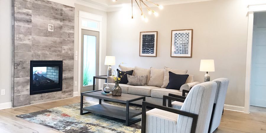 This beautiful home had unique modern-elegant features so we used those to inspire our staging. We used more contemporary furniture with clean lines to compliment this home’s modern aesthetic. We kept the color palette soft with blues and grays, and used metallics to help tie in our look to the light fixtures.