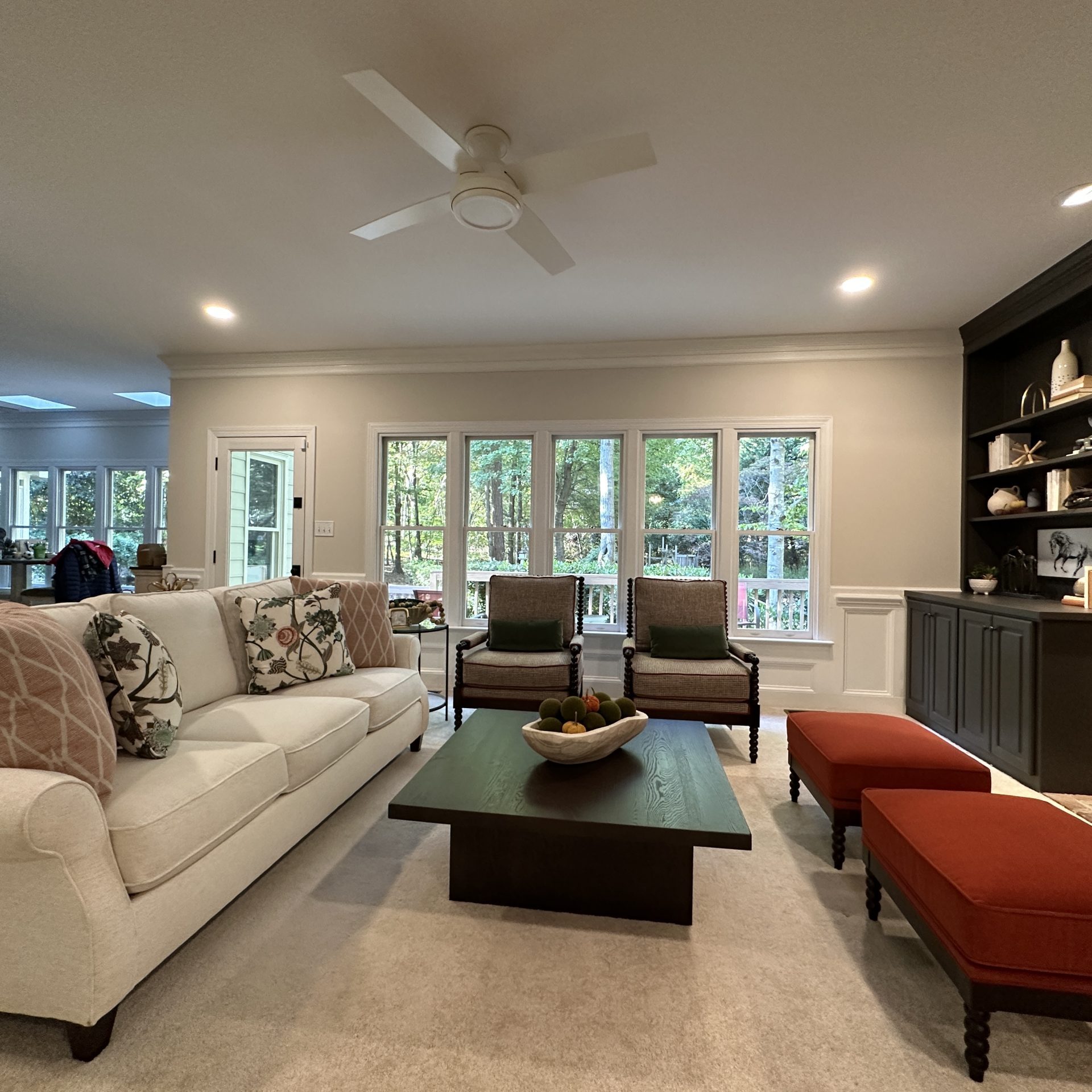 This has been one of our favorite projects at reDefine Home Design. Our clients bought a beautiful Raleigh home with great bones, but knew it could use some special touches to make it uniquely theirs. We had three major rooms to prioritize, plus a walk-in closet. We really dove into exploring with color during this project. For all three rooms we decided to go out of the box by choosing a unique color that would give each space its own look. Then we sourced furniture, rugs, lighting and accessories to tie all the spaces together.
